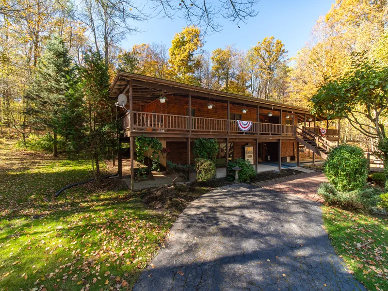 Welcome to 481 Panama Bear Lake Road!! This 4 bedroom, 2.5 bath raised ranch home with wood exterior is located on 19.7 wooden acres with a beautiful tree setting and mature gardens. Entering the driveway, besides noticing this wonderful home is a large 3 door garage with concrete floors and high ceilings along with a 4th rear door in the back corner. There is a concrete pad to the left of the garage and a shed and pheasant coop to the right of the garage. As you approach the home, there are 2 welcoming entry doors on the ground level and 2nd level, each with their own unique character. Entering the home through the lower entry, you will notice a concrete covered patio with areas to sit and relax. This entry has a sliding glass door which leads to a tiled floor and opens to the lower level. To the right, is the laundry and HVAC room which includes an electric washer and dryer, gas hot water tank, water softener, propane gas boiler and electrical panel. To the left is a spacious, open carpeted family room with large windows. Moving forward and to the right, is a large full bath with a tub and shower combo and vinyl flooring. Down the hallway from the bathroom are 2 bedrooms with carpet and a closet areas. From this level, there is a large, wide stairway that leads to an amazing 2nd floor living space. At the top of the stairs, you find a large kitchen with black walnut cabinets, a large center island with 4 stools, a stove, refrigerator, dishwasher and counter space galore to prepare meals. There is also a dining area and a great room with a wood ceiling and beams along with a doorway to the wrap around deck. Down the hallway to the left is the primary bedroom with carpeting, its own full bath with 2 sinks and a tub and shower combo along with its own doorway to the second floor deck. To the right, is the fourth bedroom currently serving as a office along with a half bathroom. Off the kitchen is the second entry door with a large tiled foyer and 2 large closets for welcoming family and friends. The outdoor deck surrounds the entire house providing unique areas to sit, relax, entertain, or enjoy this wonderful setting. This home is a must see!