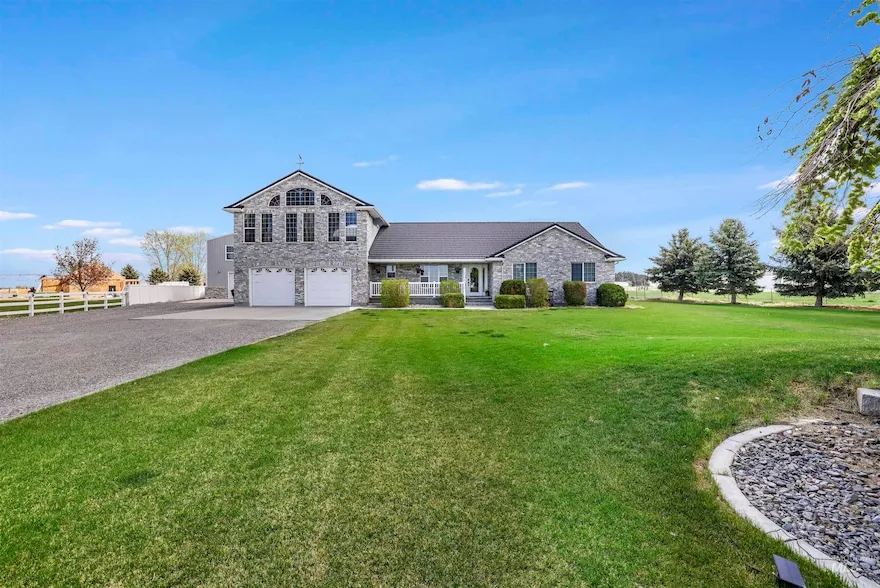 Country Living near town. Sits on 1.02 acres with Home and Shop!! Has a chef's delight for great space to work and bake in this wrap around kitchen. Wonderful concrete island and tile countertops, Gas cooktop and double ovens. Formal dining and a breakfast nook. Large bonus room that can be the 4th bedroom (Biggest bonus room around has an office, entertainment / TV area, wet bar with cabinets and more). Gas fireplace in large great room. Custom tile flooring in Master Bath, Guest bath, Laundry, Kitchen, Dining and Breakfast nook, Oversized 3 car garage 3rd bay is side entry. Then an unbelievable a 30 x 40 shop! Shop has heat and AC and a bedroom with full bath. Upstairs has a full living unit. The upstairs unit does get rented out and brings good income through VRBO or Air bnb. The family uses during holidays or get togethers making it an Amazing gathering home. Home, Bonus room, Garage, Shop and rental have mini HVAC splits for comfort. Home faces West to enjoy Morning sun and Evening Shade. Must see!!