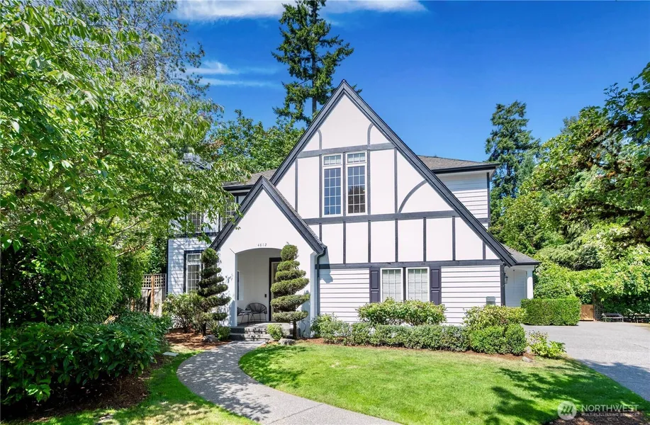 Charming Tudor home in Bellevue's desirable Silverleaf neighborhood! Featuring dramatic double-height ceilings, elegant architectural moldings, fresh interior/exterior paint, and brand-new quartz countertops. Spacious, open-concept gourmet kitchen flows seamlessly into a large family room with two cozy gas fireplaces. Luxurious primary suite, main-floor bedroom/den option, plus versatile loft area overlooking formal living room. Enjoy the private backyard with new sod, swing set in cozy shade, and 3-car garage. A/C included, HOA maintains common landscaping. Truly move-in ready!