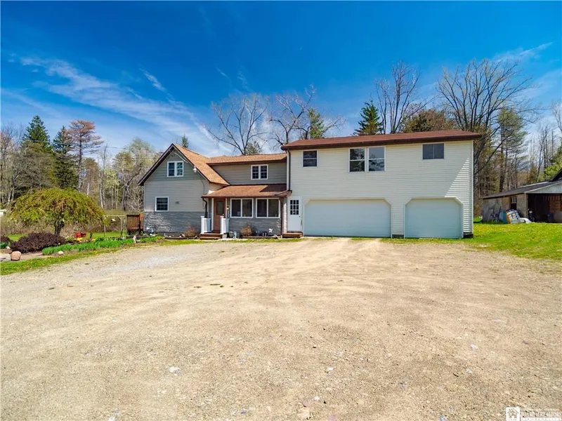 Presenting a 4 bedroom - 2 full bath located in the Chautauqua Lake School district and only one mile from the Historical Chautauqua Institution. If is being sold partially furnished including all appliances. Interior features include a nice size mud-room with plenty access to the garage. Kitchen is bright with plenty of counter space, stainless steel appliances and the dining has sliding doors that lead out to a deck...perfect for out door dining. The den is located off the dining room and could be converted to an additional bedroom with sliding doors that lead out to the second deck, pool and hot-tub and BBQ area. The first floor full bath has a standup shower. The living room is a bright-sunny room with electric log fireplaceand also leads out to the back yard and pool area. On the second floor is a laundry room, office (could be a bedroom), and three additional bedrooms - one has a balcony leading out to the view of the pool and hot tub... all within steps of the full bathroom. Exterior features include aboveground pool, deck and hot tub. The garage is oversized with a second floor room (28x32)... the perfect game room! In addition there is a 2 bedroom cottage next door.