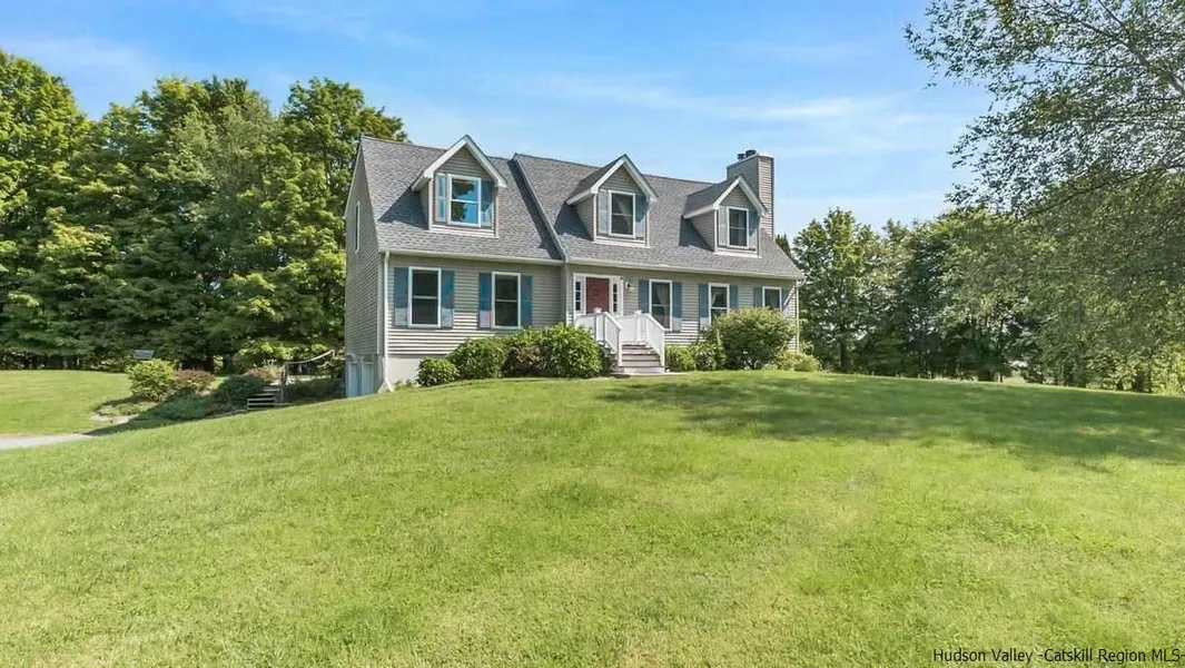 This beautiful Cape-style home is situated on over 6 private acres of trees and meadows located on a sweet country road only 5 minutes from Stone Ridge. The setting is incredible, with fantastic views of mountains, meadows and woods from any location on the property, and from the expansive, multi-level decks around the home. The main level of this meticulously maintained home is open and inviting. It has a large living room with a wood burning fireplace and double glass doors that, when open, flows seamlessly into the dining room. The dining area connects to the open kitchen which has a large eat-in bar in between. Beautiful wood floors throughout the first floor connect all areas together to give a feeling of open flow between the rooms. With a flexible floorplan, the first-floor family room can easily be converted into a main floor bedroom. A large, beautiful 4-season sunroom sits off the dining room and boasts many windows to enjoy the views year-round. You can easily access the multi-level decks from the sunroom, which will become a favorite place to gather, entertain, or relax. The second floor has 3 bedrooms. All are spacious and the primary bedroom measures 24 x 16 feet and has a very large closet. The lowest level hosts a 2 car, drive-under garage on one side, and basement on the other. With such an incredible location and setting to match, the large garden, woods, meadows and mountain views greet you and pull you in. You become surrounded by nature and easily fall in love with this beautiful property.