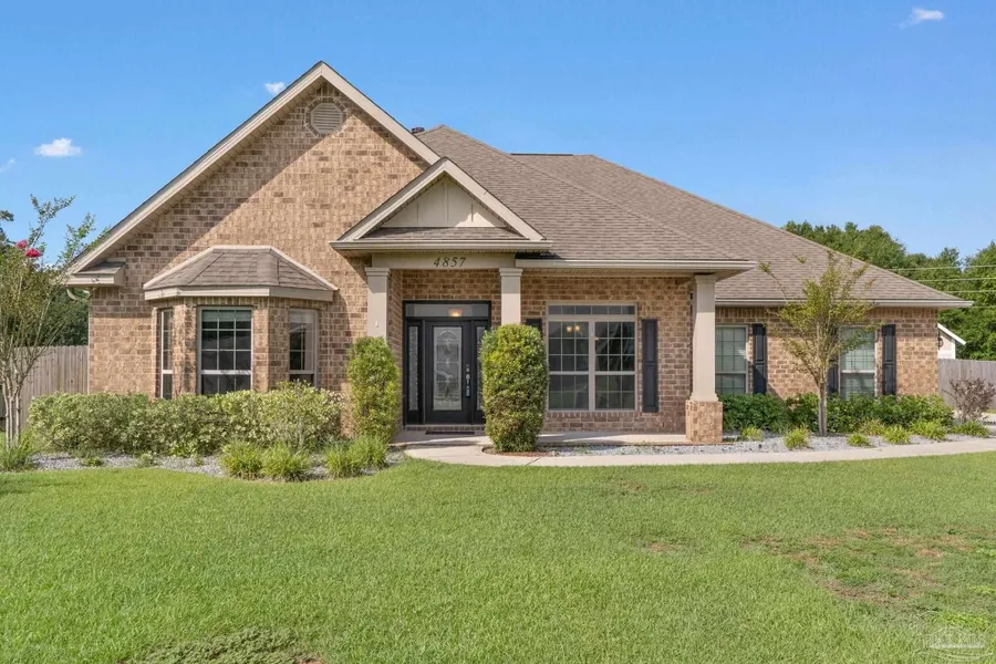 Welcome home to this stunning McKinsey Model located in Spencer's Ridge, one of Pace's most desirable locations! This spacious 5-bedroom, 3-bath home sits on a beautifully landscaped half-acre lot, offering the perfect blend of comfort, functionality, and outdoor living. Step inside to find an inviting open floor plan featuring high ceilings, elegant finishes, and abundant natural light. The extended playroom/bonus room includes custom built-in bookcases, making it an ideal space for a media room, home office, or children's retreat. The gourmet kitchen boasts granite countertops, stainless steel appliances, a large island with breakfast bar, and a walk-in pantry-perfect for entertaining family and friends. The master suite is a true retreat with a spacious ensuite bath featuring dual vanities, a soaking tub, separate shower, and a generous walk-in closet. Enjoy the Florida lifestyle in your private backyard oasis! Relax around the custom firepit or get creative in the detached workshop-ideal for hobbies, storage, or DIY projects. With plenty of room to add a pool or garden, this property offers endless possibilities. Additional highlights include: Split floor plan for added privacy, two-car garage, covered patio, convenient location close to Pace schools, shopping, and NAS Whiting Field. This home truly has it all - space, style, and prime location.