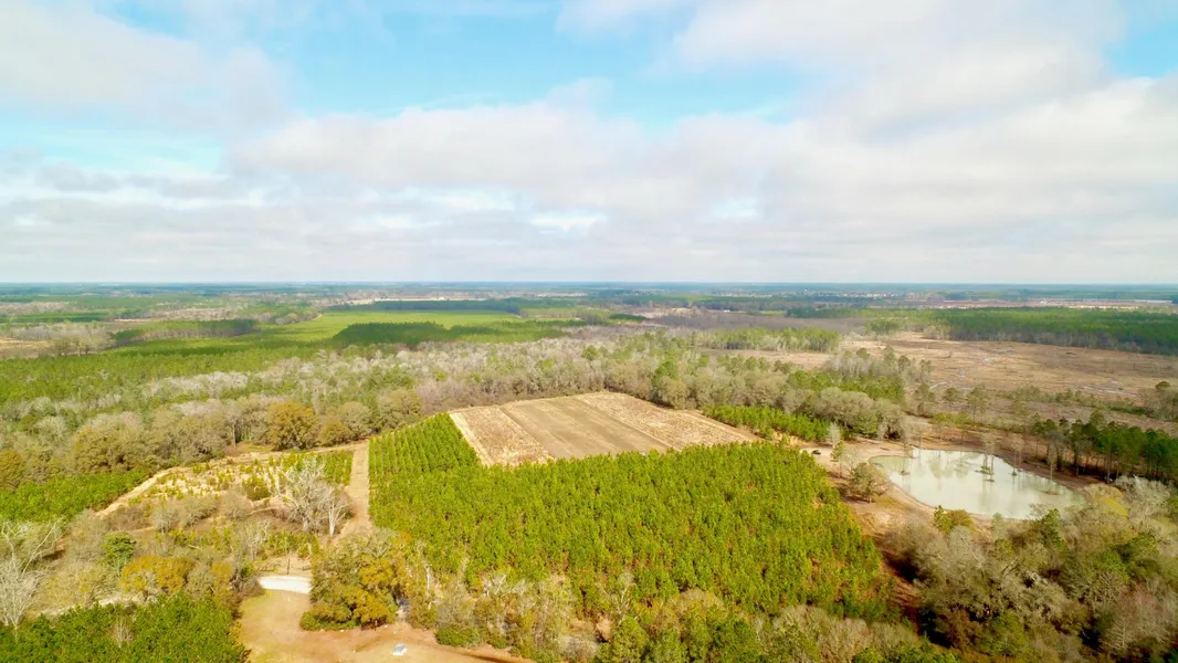This is the perfect all around homestead, recreational and investment tract. Beautiful hardwood borders the West side of property. The planted pines flow througout the property bordering a nice pond with big cypress trees. Power, deep well and shelter for storage are all located on the property. The big hunting tower overlooks the deer plots and hardwood area. Large pecan trees are located in the front entrance. This tract provides privacy and seclusion with county living at its best.
