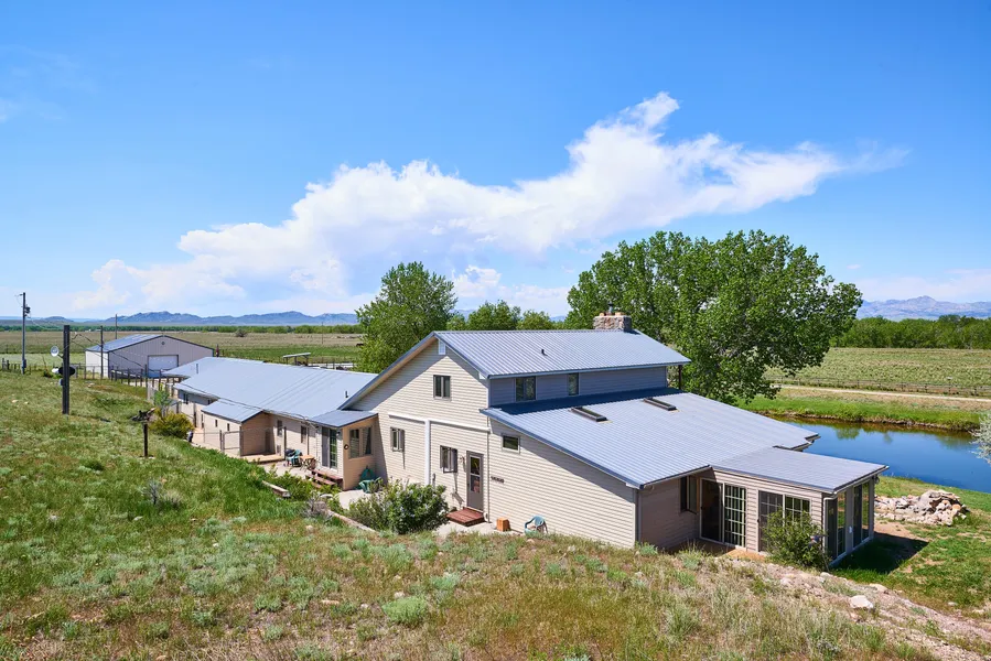 Amazing, beautiful views of Laramie Peak and the lake. Very private and secluded with beautiful trees, pool, and a water feature just outside the cozy sunroom. There are three bedrooms a master suite on the main floor and two bedrooms on the upper level with one bath. Kitchen/dining room boasts open floor plan and vaulted ceilings, breakfast nook off the kitchen. The sunroom/TV room off the master bedroom is all glass with sliding doors/screened to be able to open and enjoy the water feature and views.