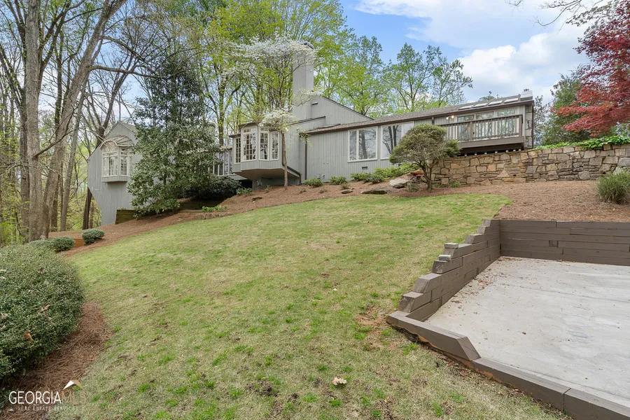 RARE Mid Century Modern architecture by noted architect Henri Jova on 2.1 ACRES in Sandy Springs. Inside the perimeter and set way back up on the property behind gates. All main floor living spaces and completely renovated. Kitchen floor to ceiling windows, island and new appliances and is open to breakfast and family room. The dramatic vaulted two story living room has views of the walk out pool and private property. On the far end of the house is the primary suite with vaulted beam ceilings, separate sitting rooms, fireplace and views of the property and pool. All new bathrooms with stone floors and lots of natural lighting. Two additional bedrooms on the other end of the house with two bathrooms. Cozy study with fireplace completes the private property.