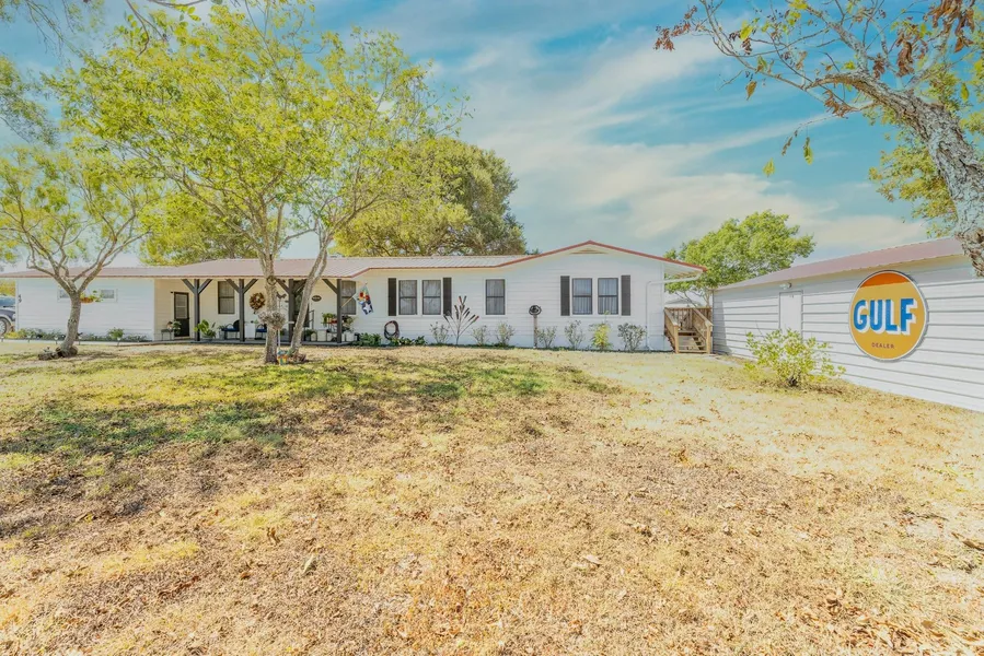 Charming country home on 2 plus fenced acres in Gonzales County within easy driving distance to town, shopping and schools. This 3-bed, 2-bath home showcases original wood floors, tiled bathrooms and a private split layout. The third bedroom is currently utilized as a den/home office, adding to the spacious versatility of this home. With an attached storage garage perfect for a golf cart or motor bikes, the property also offers a detached 2-car metal garage with enclosed storage room for tool organization. A large 36x16 workshop with attached awning caters to various hobbies. The fenced acreage allows for owning a horse or agricultural project. Ample front and back yards provide plenty of space to entertain family and friends. The quaint back porch enclosed with antique pained windows leads to the spacious fenced yard and gazebo surrounded by mature trees. Come visit this quiet and clean home!