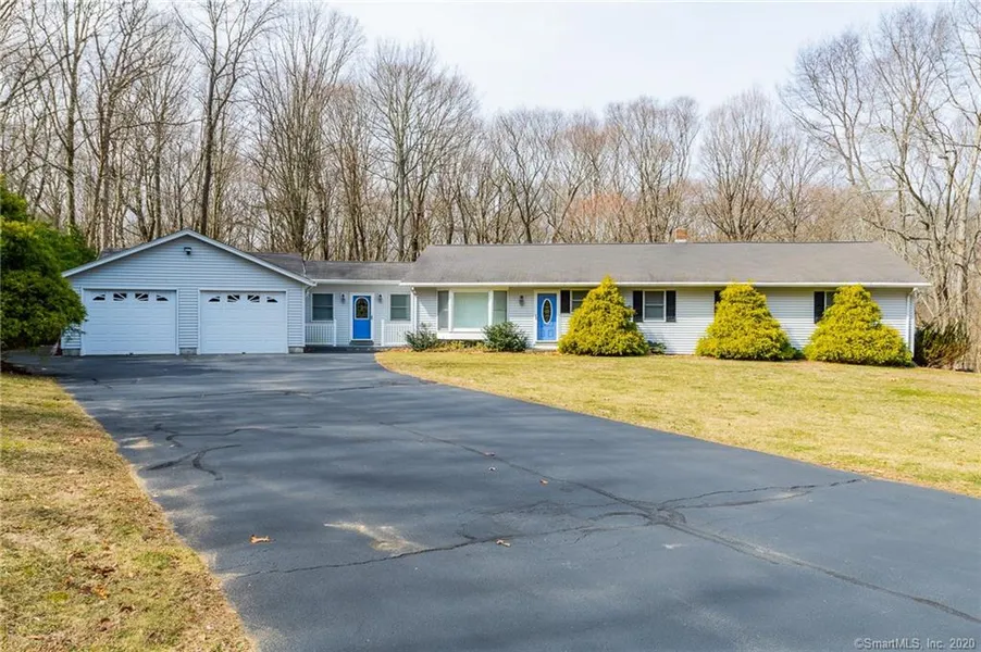 Enjoy the convenience of one floor living in this over sized ranch! Enter your home to find a large, heated Sun-Room which leads to an open floor-plan for your Main Living Space. Lovely Living Room with vaulted ceilings and bay window, large Dining space and an updated Kitchen with granite counters and breakfast nook. Head down the hall to the Master Bedroom with plenty of closet space and attached Bath. Continue to a large Office, Full Bathroom, second spacious Bedroom and a near 400 sq ft Family Room (which can also be used as a 3rd main floor bedroom!). Downstairs you will find a sprawling, dry basement with 1 Bedroom, Workshop, washer/dryer and tons of possibilities! This walk-out basement would be a wonderful addition for a Great Room or In-Law apartment! Relax on your carefree deck or in your lower level screened-in, covered porch and take in the private and peaceful surroundings with over 3 acres which include 5 English Gardens. A wood stove in the basement and included generator supplements heat and utilities in the chance of a power outage. The deceiving Garage offers FOUR spaces, perfect for the auto enthusiast! within 30 minutes to Electric Boat Corp., Sub Base, Casino's, CT Colleges and the Coast Guard Academy. Call today to book your private showing!