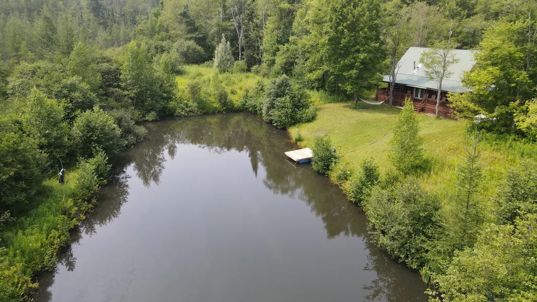 Authentic 24 X 34 log cabin finished in 2010, completely self-sufficient off the grid with solar panels, a generator backup, and propane lighting, refrigerator, and oven in your stocked kitchen. Relax on your covered porch overlooking your own private, spring-fed pond with a dock perfect for swimming and fishing, stocked with bass, perch, and catfish, along with the tranquil sounds of frogs. This Adirondack log cabin has an open floor plan with a large kitchen, 1 bedroom with a large loft, and a full bathroom with hot and cold water. Complete with a standard septic system and a 225-gallon water tank that is pumped with water from your spring-fed pond, which has been tested and is potable water. Total privacy best describes your own Adirondack Cabin nestled in the middle of 49.9 acres with access off a paved Town Road and a private driveway leading to this log cabin. Over a mile of interior trails to access some of the best Whitetail deer hunting in the Southern Adirondacks. Minutes away from the State boat and swimming beaches of the Hinckley Reservoir.