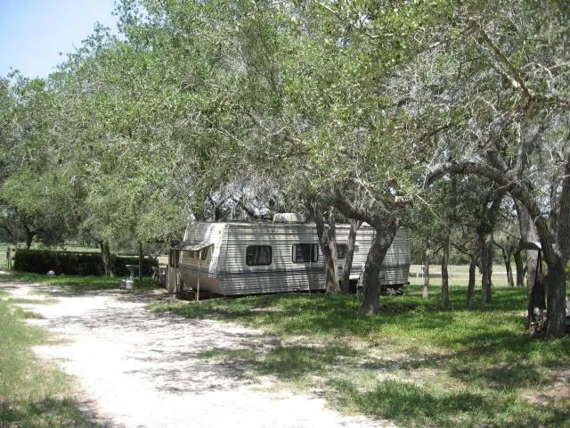 For a small tract of land, this is most beautiful and most desirable for a mini-ranch. There are two entrances, one for each 25 acre tract and the two tracts are divided by a barb wire fence with two 6-gates. From each entrance the land slopes upward to about the middle of the property. From the middle of the property to the back of the property it is pretty level. Both tracts are loaded with Oak Trees and some brush is located around some of the trees. One 25 acre tract has no water well nor a stock tank. The other 25 acres has a good water well and three stock tanks with water. The largest tank has an underground water line down to the tank with a faucet to resupply this particular tank. Also located on this property is a large pile of caliche near the barn. Caliche has been spread on all of the roads on the property. From the pile of calicle there is a gate going into a caliche pit that has been leveled and hardened. The pit has appx. 8 ft. walls all around but on one end the road continues upward to ground level. Also in this pit is a 40 ft x 55 ft concrete block building with steel posts ang girders. The building is on a concrete slab. about 95% of the barn is floores and the roof is all metal.