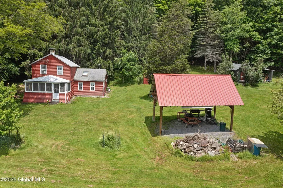 Looking to escape the hustle and find peace, tranquility, and privacy? Welcome to 490 Ecker Hollow Rd. 22 acres of scenic beauty and seclusion. This long-loved 2-bed, 1-bath camp/home features a spacious kitchen/living area, cozy wood stove heat, and an enclosed porch with serene views. Cast a line in your own pond, garden in the potting shed, or host unforgettable gatherings in the outdoor pavilion. Plus, a 2-car garage, camper for extra guests, and trails perfect for hiking, riding, or hunting. Only 8 minutes from the Village of Middleburgh and surrounded by charming farms, shops, and fresh markets. The memories are here and now it's your turn to make them.