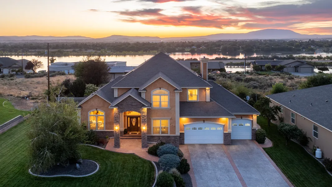 Step into a world of grandeur as you cross the threshold of this home through its grand entry. You are welcomed by a magnificent foyer, boasting an exquisite blend of granite and marble that lays the foundation for the luxury within. The majesty of the 20-foot ceilings, adorned with dual skylights, invites your gaze upwards, immersing you in a sense of openness and elegance. As you traverse the expansive main floor, the vastness of the 10-foot ceilings enhances the openness, while the intricate crown molding throughout, harmonized with Venetian plaster, accentuates meticulous attention to detail that remains a constant throughout the home. The heart of the home, the kitchen, is a masterpiece. With its solid oak cabinets, granite countertops, and a convenient island, it caters to both the gourmet and the gregarious. The additional nook and pantry amplify functionality, all while enhancing the aesthetics of the space. Adjacent to the kitchen, you discover a cozy family room centered around a wood stove with built-in fans - capable of warming most of the house. An exquisite oak and wrought-iron staircase leads you to the second floor, replete with 9-foot ceilings. The primary suite emerges as a sanctuary. The en-suite bathroom, adorned with an oversized bathtub and a tastefully designed shower, exudes tranquility. A spacious walk-in closet addresses all your wardrobe needs. A step out through the sliding glass door of the Master bedroom transports you to a stunning covered, tiled deck that overlooks the serene Columbia River - this outdoor space features tile floors and a charming spiral staircase, creating an ideal setting for unwinding and entertaining alike. Among other remarkable features, the home includes a well-insulated, 2X6 framed garage ready for 220 and RV parking. It houses two electrical panels, and is equipped for a central vacuum system. An added root cellar within the furnace room adds a unique touch for food and wine storage needs. To ensure the optimal comfort and convenience, the home is fitted with two 50-gallon water heaters and a water softener, along with a whole-house water filter and variable speed pump for the well. And the cherry on top - this home offers privileged access to the river, merging luxury with the lure of nature. This house isn't just a property; it's your gateway to a life of unparalleled luxury and comfort.