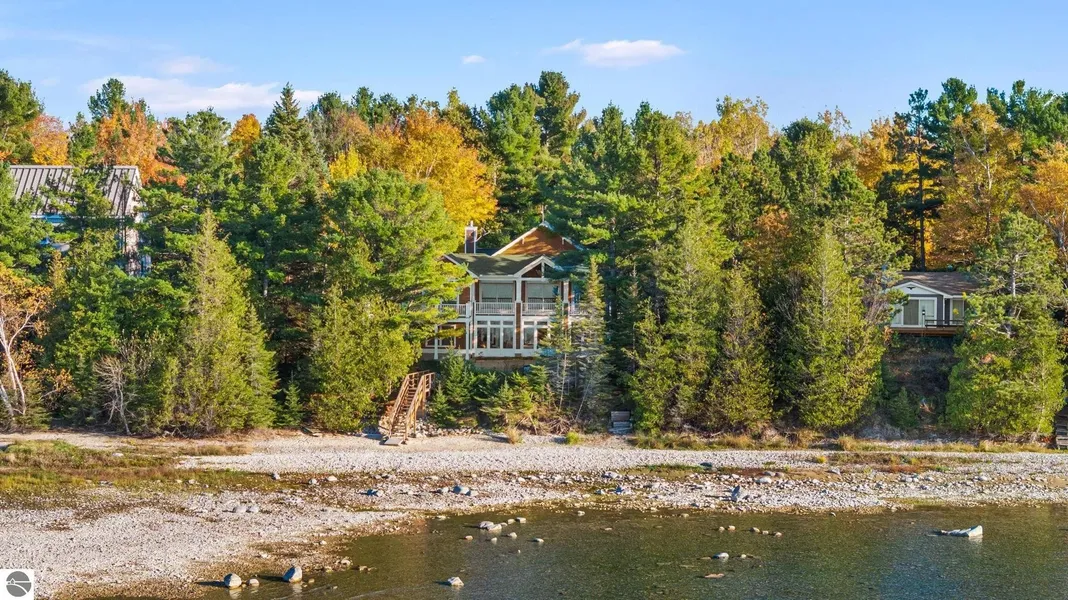 Experience iconic Lake Michigan living just 10 minutes from downtown Charlevoix. This custom-built residence offers 4 bedrooms, 2.5 bathrooms, over 3,800 sq. ft. of thoughtfully designed living space. With nearly 100 feet of private frontage on a 0.7 acre lot, you’ll enjoy sweeping lake views that showcase stunning summertime sunsets along with sightlines of the Fox Islands and Fisherman’s Island. Crafted with timeless natural cedar shake siding, the home has been updated with a new roof and whole-home generator. Inside, an open-concept layout welcomes abundant natural light, highlighting dramatic lake vistas enhanced by transom windows. The main living area features in-floor radiant heat and on-demand hot water throughout the home provide for year-round comfort. Outdoor living shines here. A spacious covered porch with tongue-and-groove wood flooring sets the stage for unforgettable sunset dinners, while an enclosed porch off the lower-level walkout extends seasonal enjoyment. Ideal for the lake lifestyle, this property includes a detached 2-car garage, an oversized 1-car garage, and a heated boat garage perfect for paddleboards, kayaks, and other waterfront essentials. Just beyond the property, explore 1,000 acres of State land featuring sandy beaches, hiking trails, and endless adventure. From its unmatched setting to its thoughtful design and updates, this Lake Michigan retreat is one you’ll want to experience in person—a true must-see.