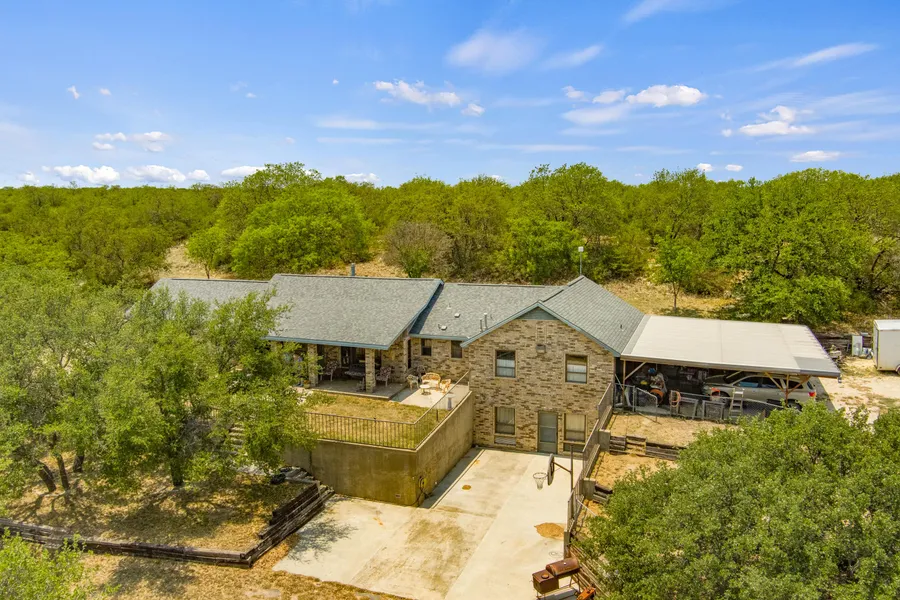 If you are looking for that beautiful ranch with privacy, look no further! This 170 acre beauty is located in the Hill Country, south of Abilene. Beautiful Oak trees throughout with nice elevations. Custom home built into the side of a hill, with fantastic views of the countryside! This 4 bedroom, 3 bath, has open floorplan, living area with wood stove that opens up to a huge kitchen. Home features include, reinforced, fully built out basement.