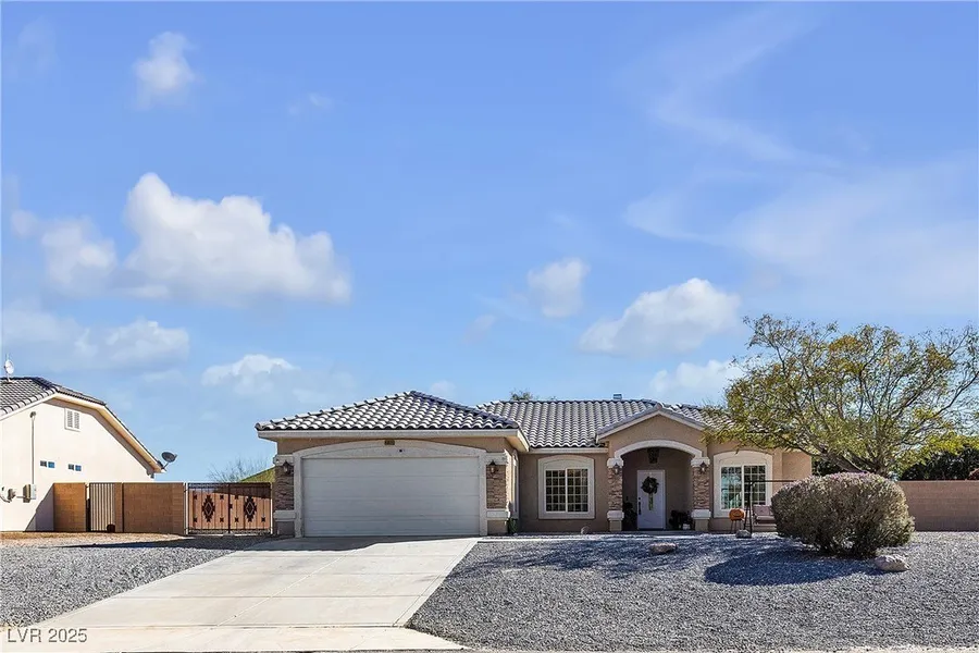 Your Pahrump home awaits!! Sprawling over nearly 2,100 sq ft, is a 3 bedroom, 2.5 bath, 2 car garage home that's move-in ready. Tucked in a quiet south Pahrump neighborhood with 1/3 acre lots and public utilities, this magnificent home possesses lots of character. Enter through the front door and be greeted by a formal living room with views of the kitchen and breakfast nook. Separate dining area allows for entertaining a multitude of guests simultaneously. Large family room with ample windows which brings in plenty of natural sunlight. Primary bedroom on right side of home provides privacy while possessing a good size bathroom with dual vanity sinks and walk-in shower. Additional bedrooms on other side of home share another well equipped bathroom. Low maintenance landscaping in front and a blank slate in the backyard ready for your dreams to come alive. Home's location allows for easy access to Highway 160 for commutes to Las Vegas within 45-50 minutes. Take a tour today!!