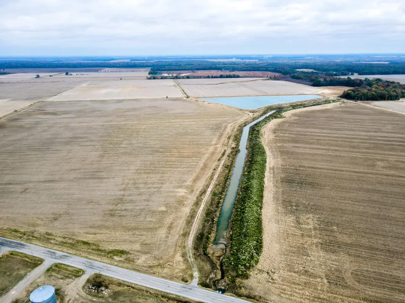 The Petrus Family Farm consists of 492.25 +/- acres, per the Prairie County assessor, in two non-contiguous tracts located west of Des Arc, Arkansas in Prairie County. Arkansas State Highway 38 bisects the main portion of the farm and provides excellent access to both tracts. The Farm Service Agency office reports a total of 456 +/- cropland acres are being planted, all of which are irrigated by 4 wells and 2 re-lifts. The planting history includes a good mix of soybeans, corn, and rice. All of the tillable acreage on the main tract drains back into the tailwater recovery pit, which can be pumped into the 15 +/- acre reservoir for storage. There is also a screw gate that allows you to gravity flow water from the reservoir back into the tail water recovery pit, which can then be picked up by a ten inch diesel turbine re-lift that is tied into a network of underground pipe.