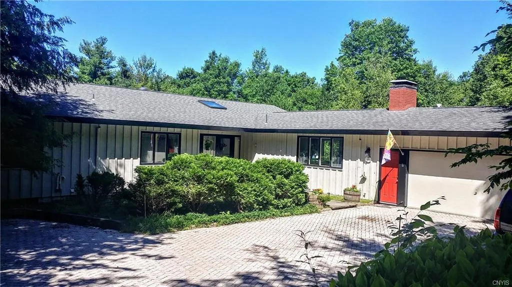 Must See from the Back Yard to fully appreciate! Nestled in the woods with natural landscaping surrounding you, sits this Spacious Contemporary Ranch with 5 bedrooms and 3 full baths. Extended Paver Driveway leads you to the front door, where you enter a slate floored foyer. Everywhere you look you will find surprises. Multiple Fireplaces, Updated Kitchen, Wrap-around Decking, Summer House with spacious storage beneath for lawn equipment etc., Huge Windows and light from every direction, Marble Tiled Master Bath, and space, space, space. All conveniently located to shopping, easy highway access and in the FM School District.