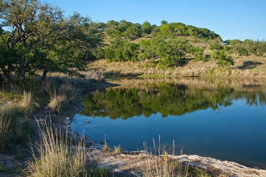 High Lakes Ranch is located in southwestern Blanco County, about ten miles west of Blanco, on paved Maenius Road in an area of medium to large working/recreational ranches and acreage tract subdivisions. Being part of a ranch once owned by actor Jimmy Stewart, High Lakes Ranch shows its sheep and goat heritage by having little to no cedar amongst its gorgeous cover of oaks, resulting in a refined, sophisticated look. The location is next to none, with the now-famous 290 Wine Corridor less than ten miles north, and sizzling Fredericksburg just 20 miles west. This is about an hours drive to either Austin or San Antonio, both home to international airports, and smack dab in the big middle of one of the three top growth areas in the United States. The ranch features at least seven vista points with huge southeastern exposure, along with several pond sites in the draws that could be enhanced. A uniform cover of live oak and Spanish oak is observed on the hillsides and tops, while heritage live oak, elm and walnut appear in the deep soil valleys. Hunting can be described as good for whitetail, exotics, hog and turkey, and a permanent, spring-fed pond offers potential for the fishing enthusiast. Other than perimeter fencing, this ranch is unimproved, a veritable blank canvas for the Hill Country end user with a plan. Hope to see you there soon!