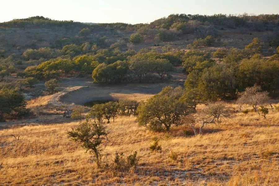 South Face Ranch is 493 acres of cedar-free oak savannah supremely located on a quiet paved road only one hour from Austin or San Antonio. The land offers up much topography, with several south-facing summits, steep hillsides, multiple pond sites and a spring-fed lake. Forests of live oak, elm, Spanish oak and walnut are prevalent, and there is very little cedar to be found on the ranch. Wildlife is abundant and includes healthy numbers of whitetail, axis and turkey. The ranch features staggering vistas to the south and east, overlooking the Blanco River valley in the distance, and there are multiple properties under Conservation Easement or restrictive covenants in the general area. If one seeks a blank canvas with superior location to Austin or San Antonio, South Face Ranch must be on their short list.