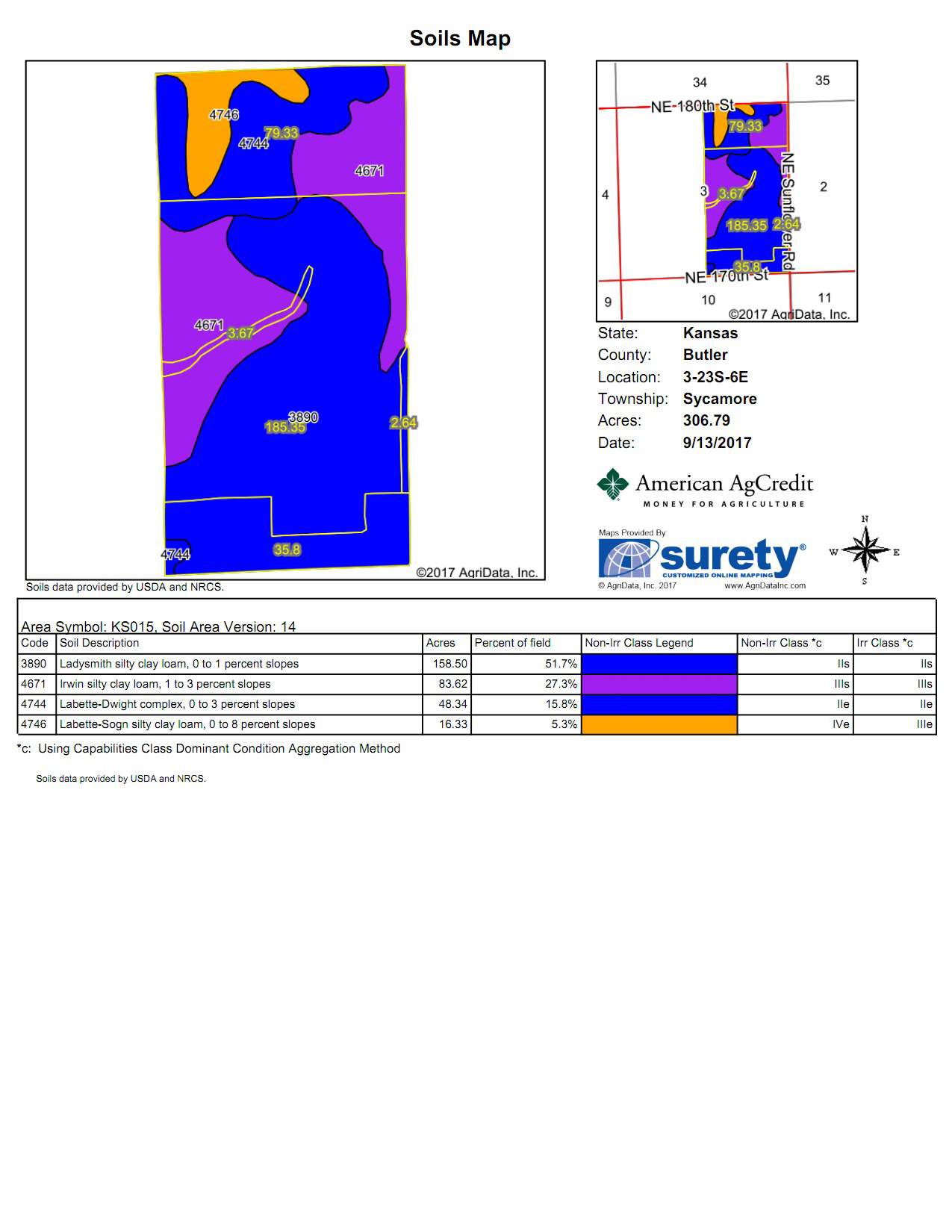 305+- acres of excellent quality land located in Northern Butler County, Kansas on the Chase County line. Great opportunity to purchase a diverse farm/ranch to expand or start your agriculture operation. There is approximately 185 acres of tillable, 107 acres of native Flint Hills pasture, 6 acres of waterway planted to Brome, and the balance where the homesite is located. The north native pasture area has 2 ponds and a water well that is not currently in use. The south native pasture has a pond and feeds nicely into the livestock working pens that are serviced by an excellent water well. Very well kept & beautiful property, great location, and set up nicely for a farming & livestock headquarters.