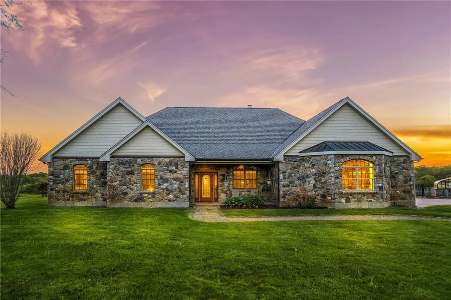 Old Stone Farm offers privacy and nature's splendor on gently rolling 11.5 acres. Abutting conservation land, this 2002 custom built home offers numerous top quality building features including radiant heat floors, Energy Star certification, solar panels, Pella windows and doors, a 50 year Certainteed roof resembling slate, a portable generator for backup power and much more. Car enthusiasts, horse owners, gardeners and hobbyists will love the 2 story, 1600 sq foot barn. Finished, insulated and heated, the barn offers 200 amp electric service and cold water plumbing. A working greenhouse is attached to the barn. The barn's top floor is an open loft with a functional hoist arm. The home's 2600 sq feet of living space is gracious yet casual. Three generously sized bedrooms are paired with 2 full bathrooms. The master bedroom has a large, sunlit bathroom with jetted tub and walk in shower and a huge walk in closet. A laundry room is smartly placed near the bedrooms. The large living room with its soaring cathedral ceiling and floor-to-ceiling stone and granite fireplace is the centerpiece of this special place. Spacious dining room with french doors flows from the living room into open-layout kitchen. In the very spacious kitchen, a center island, built-in hutch and large dining area make this space perfect for your entertaining and everyday cooking. Live here! Relax, collect, garden, tinker, enjoy your animals, work from home - it all awaits you at Old Stone Farm.