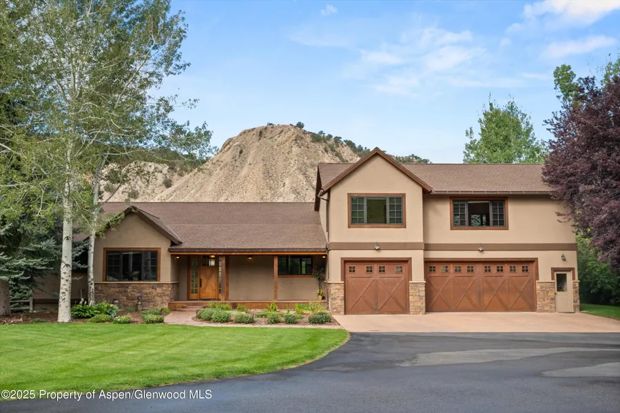 ''Riverfront Luxury: Where Quality Meets Serene Colorado Living!'' Nestled on 2.2 acres of serene landscape along the picturesque Roaring Fork River, this exquisite ranch-style estate in Glenwood Springs, Colorado, embodies the perfect blend of luxury, privacy, and natural beauty, offering an unparalleled lifestyle for those seeking a sophisticated retreat amidst the stunning Colorado mountains. The expansive property boasts five bedrooms, including two opulent owner suites, each with private outdoor access and lavish amenities such as walk-in showers and expansive views, alongside three full bathrooms and one half bathroom, thereby catering to both comfort and elegance. The home's sophisticated systems include central air conditioning and in-floor radiant heat, ensuring comfort throughout the year, while two gas fireplaces add warmth and ambiance. The expansive walk-out basement is designed for entertainment, featuring a bar and ample room perfect for movie nights or gatherings. Additional features include a locked gunroom. The estate's impressive layout consists of an attached three-car garage, complemented by an Accessory Dwelling Unit (ADU) above the garage, which boasts a bedroom, bathroom, kitchen, and spacious living area with a concrete deck, providing an ideal space for guests or potential rental income. In contrast, the separate 40/60 garage/shop, equipped with a full-size bathroom and workout room, adds a unique dimension for hobbyists or entrepreneurs. The beautifully landscaped grounds, replete with mature trees, a gazebo, and a wildflower hill, invite relaxation and recreation, whether it's enjoying the fire pit, rafting or fishing directly from the property, or simply taking in the breathtaking Colorado views, all within a private interior lot setting that is free from HOA restrictions and benefits from a well and recently pumped septic system, ensuring a self-sufficient and serene living environment that is ideally situated for accessing the renowned ski resorts of Aspen Mountain, Snowmass, and Sunlight Ski area.