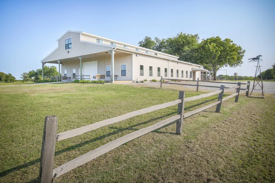 Complementing the natural beauty of the property is a 60 x 100 metal building that has tremendous potential. The metal building was constructed on the hill overlooking the lake and its location provides views of the water below as well as the surrounding property. The first floor of the building is finished out with bathrooms, a great open area for large gatherings, a cantina room, and a partially completed kitchen. The second story is framed and plumbed for six bedrooms and one and a half bathrooms.