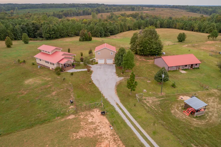 PRIVATE, QUIET 40 acres w/modern passive-solar, metal-roof home w/open concept living area, 2 owner's suites, half bath, walk -in pantry, walk-in closet, 3 covered porches; plus oversized detached garage w/studio apartm't above; well-built 5-stall horse barn w/tack room, feed room, hay stall & wash area. App. 15 acres of electric fenced pasture, riding arena, wooded areas & creek. So much already there & even more potential Only ten miles to South Hill, convenient to I-85, & close to 50,000-acre KERR LAKE. Quiet, country location about one mile off Hwy 47 between South Hill and Chase City. Easy access to Hwy 58 and I-85. Home built 2012 has 2 bedrooms 2.5 baths. Garage-apartment built 2008. Apartment has full kitchen, large walk-in pantry, walk-in closet, full bath and open studio living-bedroom. Horse barn built 2008.