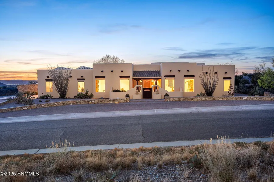 Discover the charm of contemporary Southwestern living in the heart of Miners Ridge with this stunning 3-Bedroom, 2-Bath home, offering 2,503 square feet of thoughtfully designed space. Step inside to a light-filled Living Room with sweeping mountain views, and enjoy the warm ambiance of a Family Room featuring a classic Kiva fireplace and rich wood ceilings. The Country Kitchen is a chef's dream with custom wood cabinetry, granite countertops, stainless steel appliances, a breakfast bar, and a skylight that floods the space with natural light. Entertain in style in the Formal Dining Room, or take the gathering outside to the expansive covered patio--perfect for enjoying time with friends or relaxing with family against a backdrop of mature trees and scenic mountain views. Retreat to the serene Master Suite complete with a luxurious En-Suite Bath boasting granite counters, a jetted soaking tub, a stall shower, custom cabinets, and a spacious walk-in closet.
