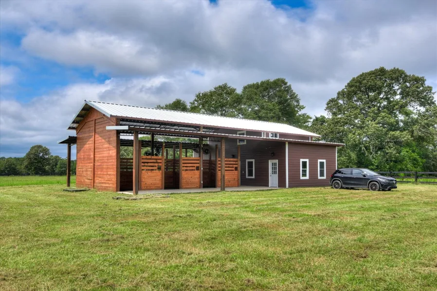 601 Bethcar Church Road is a fully fenced and gated 5-acre property located just minutes from Aiken's premier equestrian venues. This unique offering features an open-breezeway 6-stall barn with mats, fans, and removable dividers for customizable stall sizes. Attached to the barn is a loft-style lounge, creating a comfortable space to unwind. The main level includes an open-concept modern kitchen with brand-new appliances, a combined laundry room, and a full bathroom. The lounge provides generous storage and versatile space for relaxation or entertaining. Upstairs, the loft overlooks the property, offering scenic views and a serene retreat. Additional amenities include a spacious feed/tack room that could also serve as an office, as well as access to a community riding area for training and exercise. A wooded area at the front of the property offers potential for a shaded paddock, while the open layout allows flexibility to add fencing or further customize the land to your specific equine needs. 601 Bethcar Church Road presents a rare opportunity to own a functional, well-appointed equestrian property in a prime Aiken location-ready to be tailored to your vision.