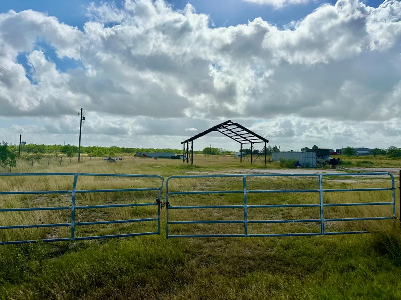 The property has a 40x30 structure that was put up for a shop, but never completed. All it needs is the tin on the roof and walls to make a great building for storage or work space. There are 2 connex storage buildings that also convey with the land. Some base material was added from the city road to the building.