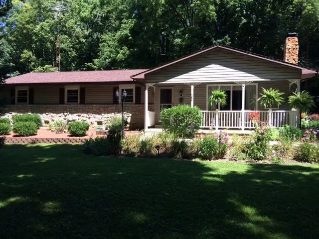A model of beauty and perfection. 3 bedroom, 2 bath ranch with custom cabinetry and doors nestled on a terraced wooded hill with stream and 5 acres. Asphalt drive to 2 car attached garage and 2 car detached with heated work shop.