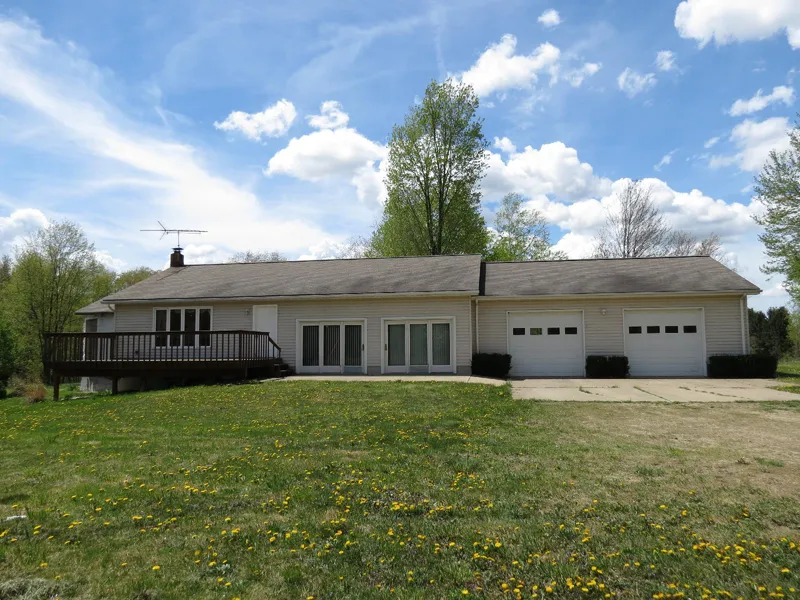 Secluded Country Gem 2 Bedroom, 2 bath Ranch on 5 acres with stream and pond. 2-Car attached garage, 12x24 deck, gorgeous maple kitchen with large green house window, lots of cupboard space, maple woodwork throughout, family room banked by wall of French doors, partially finished full basement, 3rd bedroom needs finishing. MLS 96951