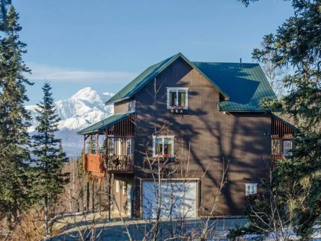 Featured in Alaska Magazine's March 2015 edition! Located in Denali State Park and just 39 miles from the south peak of Mount McKinley is this elegant, custom home. The majestic spectacle of the Alaska Range greets you from every window, and you will marvel at your personal view of North America's highest peak, 20,237 ft. Mt. McKinley (Denali). Situated on 5 acres in a gated community with a private airstrip for property owners, there is plenty of room for gardening and enjoying your privacy. The tri-level, 5 star plus energy rated home has many sought- after features, including a metal roof, ADT security system, water softner, forced-air furnace, on-demand hot water heater, satellite dish, attached garage, and top quality fixtures and building materials throughout. With 3 comfortable bedrooms and 2.5 luxurious baths, a welcoming living area, cook's kitchen with stainless appliances, plus an additional third floor sitting area and kitchenette, you will have plenty of room for family and friends. Right out your front door is access to great Alaskan wilderness and many hunting, fishing, and outdoor adventures. After a day of hiking, berry picking and exploring you will really enjoy the Infra-red 4 person sauna, jetted tub, and gas fireplaces. The owner's custom designs and meticulous care show all through this lovely home. This is a perfect year-round residence or a luxury retreat home in one of the most breathtaking locations in Alaska.