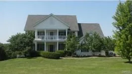 When only the best will do! Be impressed as soon as you drive up to this lovely Southern Style Two Story Estate located on 5 acres, adjoining Wolf Hollow Golf Club, minutes off I-44 in the Washington School District. Entering this lovely home, you will be greeted with a custom curved wood stair case, split front and back to kitchen, and wood floors throughout entire home. There are double antique stained glass doors to the den, which can serve as a main floor master suite, with it's own full bath. Impressive room sizes, and well positioned windows, offers a comfortable and light living experience. Each of the upper 4 bedrooms and staircase landing, are unique in character. Master suite with double door entry, rear balcony offering views of the fantastic countryside, ventless gas fireplace, two walk in closets, and luxurious bath! Another is an art studio w/vaulted ceiling. Laundry is located on second floor. LL is finished with Rec room, fireplace, 1/2 bath, and sleeping area. Additional acreage is available.