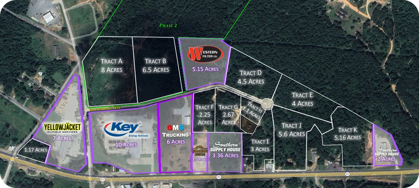 Independence Industrial Park boasts high visibility on Hwy 31 with great access to Interstate 20, U.S. Hwy 259, State Hwy 42, and State Hwy 135.
