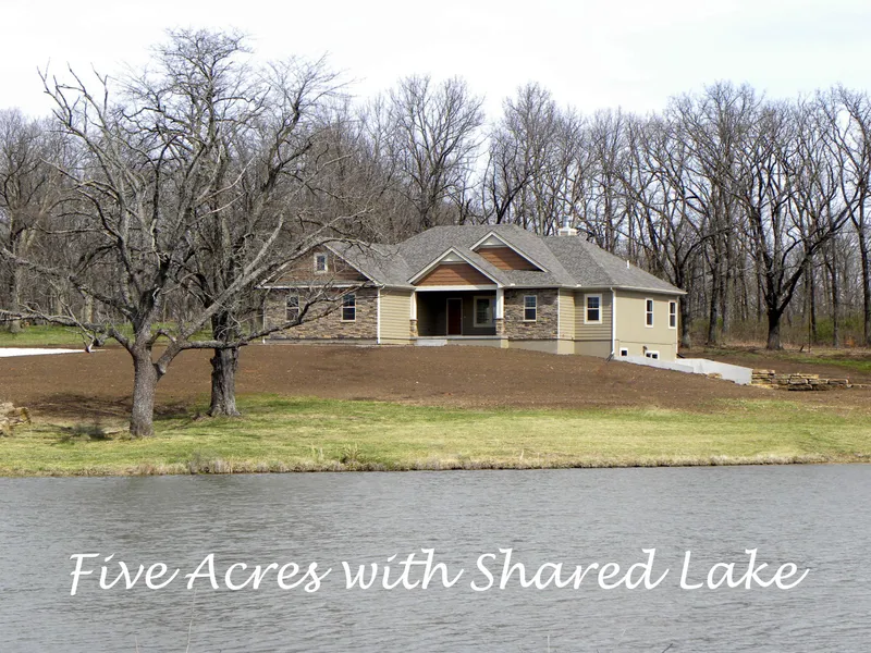 QUALITY! Amazing 5 acres with shared lake & only trees behind, craftsman-style ranch home with many extras & upgrades including LED lighting, self-close drawer glides, soft-close hinges, granite counters and vanities, oversized gutters, variable speed air handler/heat pump, super paint on exterior, extra built-ins, grocery door in garage for walk-in pantry, very open floor plan with custom alder cabinetry & island open to dining & vaulted great room with fireplace, hardwood flooring except bedrooms, gorgeous master suite area with wood-plank-tile flooring, custom tile shower with dual shower heads and custom glass enclosure, private 20x12 deck, patio out walkout that is stubbed for a full bathroom and could easily accommodate another bedroom and family room.