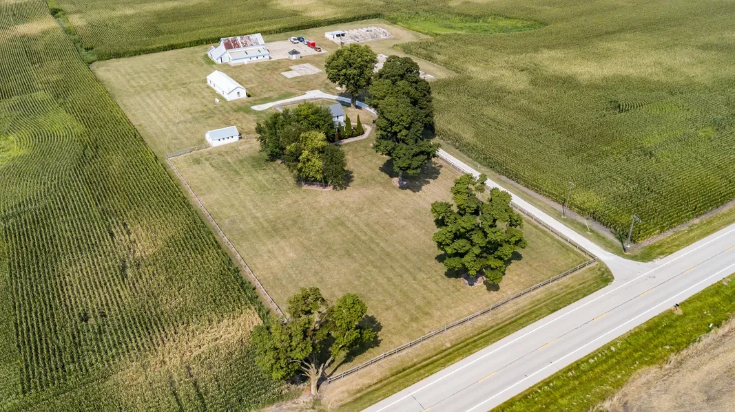 5 ACRE FARMETTE; FARMHOUSE, BARN, WORKSHOP AND CHICKEN COOP. House sits on high ground and is set-back far from the road by a large fenced front yard among mature trees. There is a newer front deck on this 2-story home that is 1,945 Square Feet with 2 Large Bedrooms and 2 Bathrooms (one on 1st floor). Need a 3rd Bedroom? Use the formal Dining Room and attached Office as your 1st Floor Master and Walk-In Closet. Large kitchen features large island (that you could replace to make it an Eat-in Kitchen). New stainless-steel appliances & newer washer & dryer. Fenced back dog-yard. MULTIPLE OUTBUILDINGS include: 20 x 24 Chicken Coop, 20 x 68 Workshop, 52 x 88 Barn and large concrete pads for parking large vehicles - Attn: Ag Business Owners; Zoned A-1. NEWER ITEMS INCLUDE: Wood Burning Stove, Window A/C unit, All Appliances are 2 years. Furnace 2010; Propane Tank is owned. 2020 taxes = $6,930 w/HO Exemption. Floorplan in Photos and see Video. Sellers will provide survey from 1 yr ago. Sells "As-Is". Sellers just purchased this farm last year and had no intentions of moving, however they were offered housing thru work. Photos are from 2020 listing - new photos coming soon. Some paint colors have changed and concrete pads have been removed (broken up and buried on the property...then planted to prairie.)