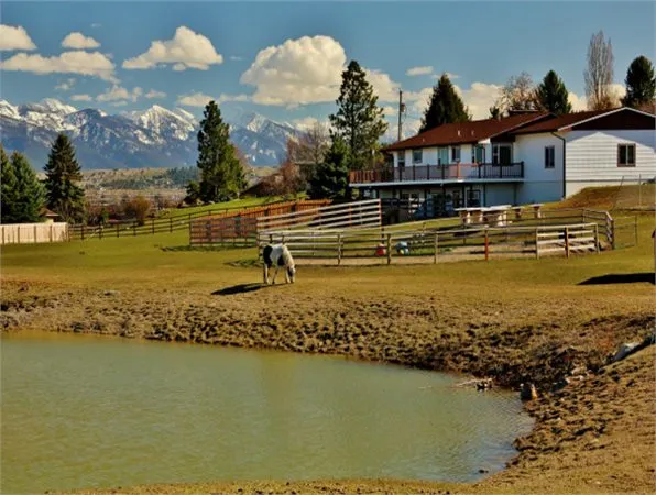 MULTI FAMILY LIVING IS POSSIBLE WITH THIS ABUNDANT 3,200 SQ FT HOME ON 5 HORSE FRIENDLY ACRES! The master suite w/private bath, secondary bedroom, office, full guest bath, primary kitchen & living room are all located on the main floor. The fully finished walkout basement offers 1 bedroom, 2 large bonus rooms, 3/4 bathroom secondary kitchen & family room. The attached, insulated & heated 2 car garage along with a 1,142 sq ft detached shop provide further family comforts. The nearly 1/2 acre pond, fed by a seasonal tributary & supplemented from the 30 GPM water well begs for a master gardeners touch. Enjoy Flathead Lake views & Montana recreation within minutes from home.