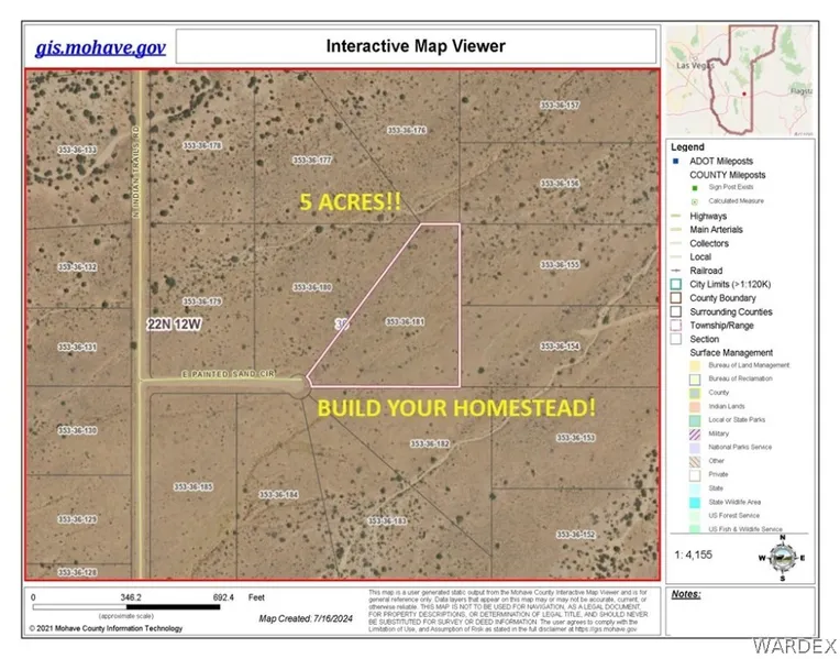 AMAZING 5 ACRE parcel off of Route 66 in Hackberry, being only 45 minutes from Kingman AZ. This property has beautiful views and sits in a cul de sac. With a little higher desert elevation, parcel has vegetation and trees throughout. This property is zoned Agricultural Residential and is awaiting your "homestead build" offering the privacy you've been waiting for. Horses and livestock are welcome! Lots of trails and wide open spaces surrounding this area. Come tour this large parcel and see if this is the one to create your very own desert oasis.