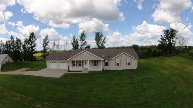 Picturesque 5 acres with quality built 4-5 bedroom home overlooking a beautiful private pond. This Monroe County home has 2048 sq. ft. of living space with a full basement in Southern Iowa for sale. The large kitchen features an island, custom built birch cabinets, Energy Star appliances, Lazy Susan, (one is a recycle center and pull out pantry. A Mendota direct vent fireplace with walnut mantle is the focal point of the living room. The master bedroom has a large walk-in closet and spacious bathroom. There is a mudroom/laundry off the garage. Extras include: central vac, sensor lights, stereo speakers in 5 rooms and the back porch, security system, whole house fan, and many other upgrades. This home as a 2-Car attached garage & an additional 30x52 building and a 1200 sq ft building with attic storage. Located within approx. 25 miles of Knoxville Raceway, Lake Red Rock and Lake Rathbun areas in Iowa.