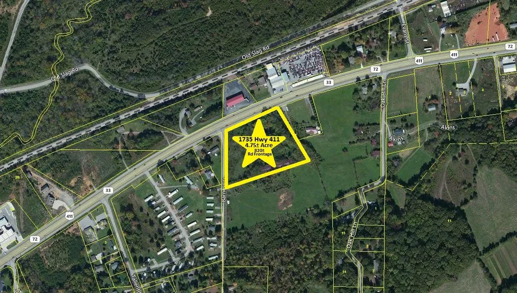 Corner lot perfect for potential commercial property. This property is in the city limits of Vonore with access to city water and sewer. Great location for your business with plenty of Hwy 411 Road frontage. Home on property, but not considered any value. (Virtual Tour provided by Google Street View)
