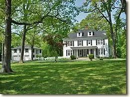 The deep front property is graced with over 20 mature White Oak trees and overlooks hundreds of acres of farmland. A winding semicircular driveway is marked at both ends with 19th century street lamps that originally lit Washington, D.C.'s Georgetown trolley line. The rear of the property is a football field sized grass lot framed by a forest known as "Big Woods"