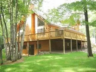 This beautiful, quality-built Northwoods 4BR, 4BA half log-sided home is situated on 5 acres & is in excellent condition. The KT has a walk-in pantry, beautiful cabinetry, under cabinet lighting, tile flooring & plentiful workspace on granite countertops. The massive great room features a floor-to-ceiling wood burning fieldstone FP, half-log walls, tongue & groove cathedral ceilings, log collar ties & large windows for natural light. A large wrap around deck offers great views of the 5 acre parcel. The ML Master BR has a large walk-in closet, soaking tub & attached BA w/double sink, shower & tile flooring. The ML also holds an office area. The UL has 2 BR, storage & loft w/skylights overlooking the great room. The finished walkout LL has a family room w/wainscoting, game room, BR, storage, custom wet-bar & laundry area w/utility sink. Additional storage can be found in the oversized, attached 3-car garage or the 50'x30' detached 3-car heated garage w/workshop. MLS #132249