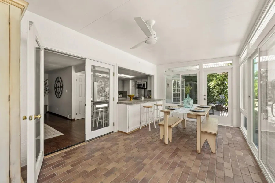 This spectacular 5-acre property in Penryn is a rare find! Nestled on one of the most beautiful roads in Placer County, this flat and fully usable estate is perfect for those seeking space, privacy, and endless possibilities. The 3,200+ sq. ft. home is designed for family, entertaining, and making lifelong memories. Inside, you'll find an interactive kitchen with an attached sunroom that fills the space with natural light and stunning views. New HVAC! The main living room boasts wood-exposed beams and a gorgeous fireplace, adding warmth and character. With four spacious bedrooms, fresh interior paint and wood floors throughout, this home exudes charm at every turn. Plus, every window showcases spectacular views! Enjoy the oversized swimming pool, a beautiful barn with a tack room and workshop area, and a large shop with three doors; perfect for tinkering, building, and creating. Also,OWNED SOLAR! The property features a year-round pond with a gazebo area, fruit trees, and sprawling fenced pastures ideal for horses, cattle, goats, or even an orchard. With irrigation water year round, the opportunities are endless. Situated in the highly desirable Loomis School District and Del Oro High. You can also ride your horse to the 90 acre Traylor Ranch.
