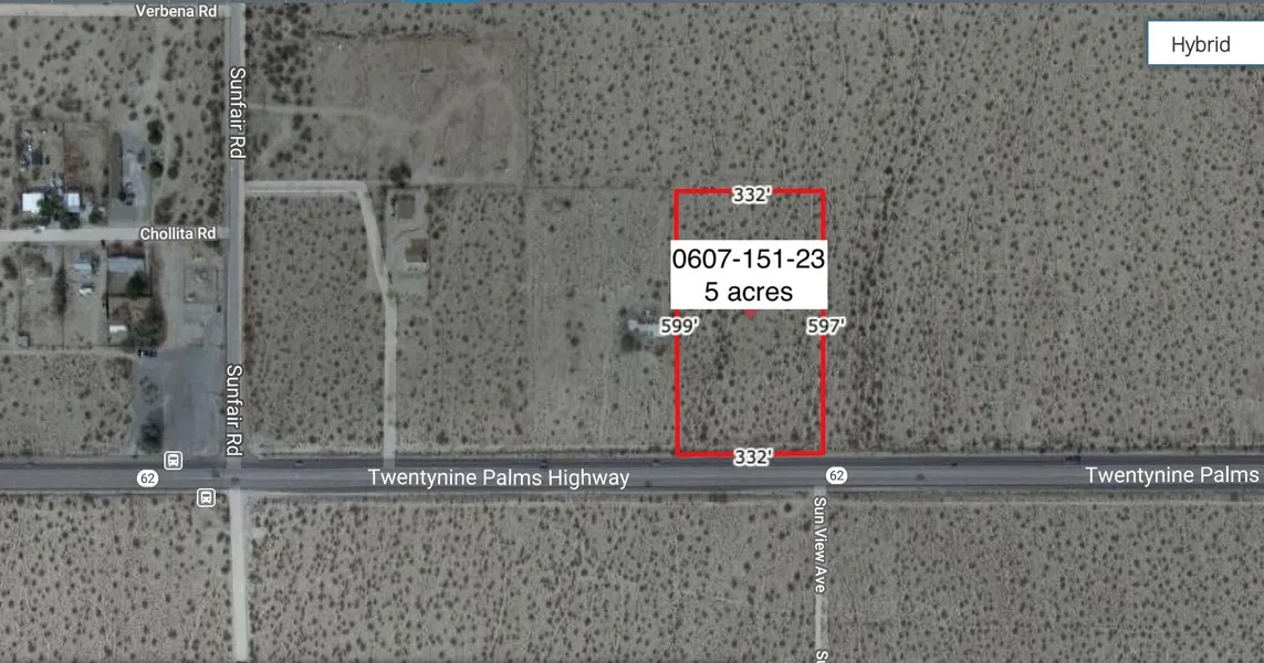 5 acres! Residential parcel in Joshua Tree. Excellent location for Copper Mountain College, 29 Palms, and just a quick drive to JT village and all its fabulous shops, dining options and of course the Saloon. An easy distance up to the Park entrance for climbing, hiking, or just a scenic drive taking in the beauty and magic of the jumbo rocks and thousands of Joshua Trees.
