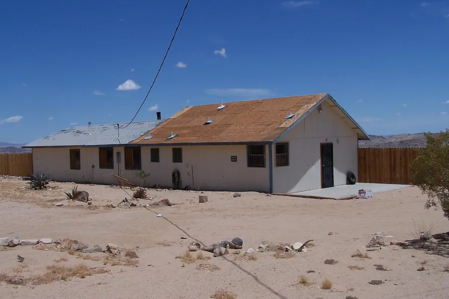 This home has so much potential of being a very fine home. It is a fixer, starting with the roof and work your way down. It is being sold in its present condition. This is more like a moderate fixer after you tend to the roof. It is sitting on 5 acres with fabulous views, it is fenced and cross fenced. There are trees and storage structures, the buyer can deal with the two vehicles that are abandoned on the property. This is a large home with power and water, it is a must see. It is just off of a paved road and only about 10 minutes to downtown Yucca Valley. Don't Wait - Call Now!!