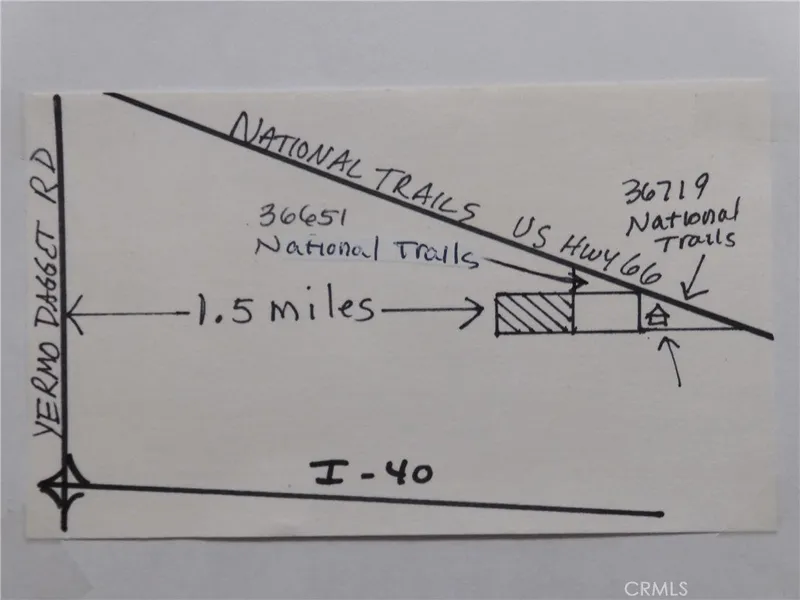 This 5 acre parcel approximately 300' south HWY 66 (National Trails Hwy). Approx. 1.5 miles east of Yermo/Daggett Rd. No sewer or water service available. Residents in area have wells and septic systems.