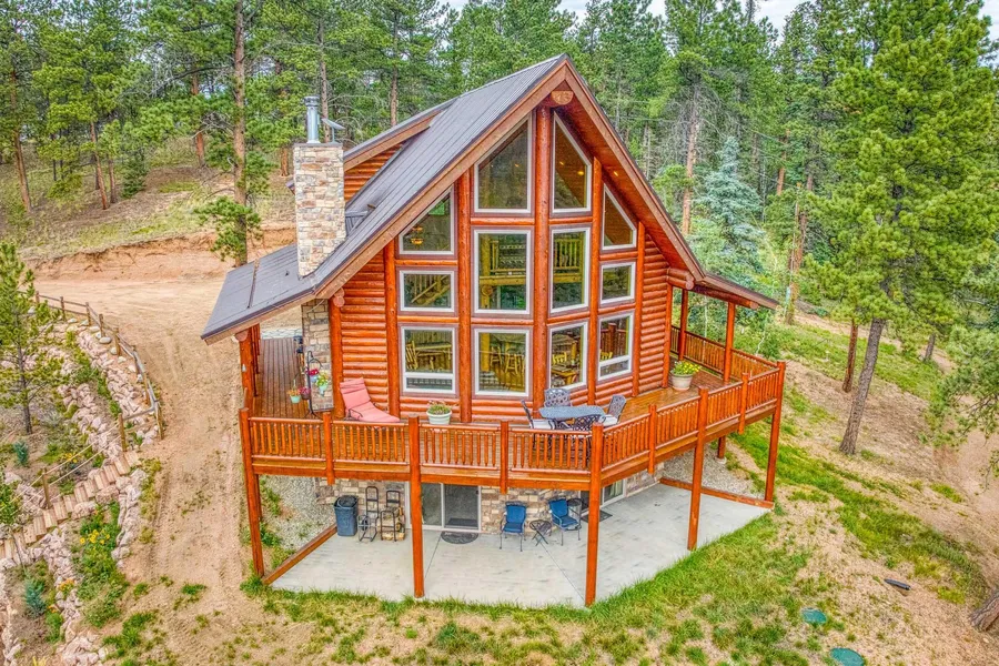 Little Bear is situated on 5+/- acres with a custom 9-inch solid log home thoughtfully designed with all the upgrades you could imagine, as this is the personal home of one of Teller Counties premier log home builders.The property has a one and one half story log home, the most popular floor plan in this region with the floor to ceiling window wall to show the amazing views. Interior details include things like solid wood knotty alder six panel doors, granite counter tops throughout, hickory floors and cabinets and lifetime warranty on Milgard windows. The well is an excellent producer with great tasting water. The radiant floor heat can be operated in a number of ways, including the outdoor wood boiler furnace or propane forced air gas. There is a main level gas log fireplace and a wood burning stove in the basement family room. Oversized three-car detached garage can be accessed through the breezeway and is completely finished on the inside. Off the charts is the additional state of the art detached shop with 16 foot overhead doors to accommodate your RV or other equipment. The shop has Radiant in floor heat and is insulated with running water.