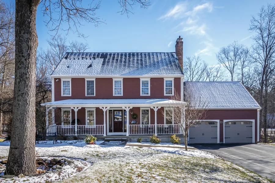 This charming colonial in desirable Cronin Brook neighborhood sits perfectly on just over an acre of land. The beautiful Farmer's Porch in front is perfect for watching sunsets every night. As you enter you are greeted with all hardwoods throughout the first floor. Your dining room offers a wood burning fireplace and newly remodeled kitchen with granite countertops and all new appliances with tons of storage. The living room and family room have plenty of natural light and space. Right off the kitchen is a half bath with laundry, access to the oversized, heated garage and a good sized deck that leads down to the in-ground pool. Upstairs, the main bedroom has hardwood floors, cathedral ceilings, two closets, one a walk in, and a gorgeous full bath with double vanity, shower and clawfoot tub. Two additional bedrooms and full bath complete the second floor. The finished basement offers another bedroom and living space with walkout right to the pool. The beautiful yard has a full irrigation system and shed!