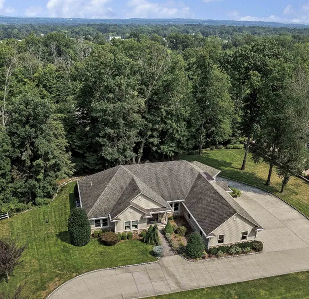 Stunning custom built ranch on one acre lot in upscale Buckingham Estates. 3,488 square feet of one level living with elevator service to basement and second level having an unfinished attic with finishing potential. Three car garage on grade and an additional 4 car tandem garage built-in. Natural gas direct generator. Public water and well on property for irrigation and kitchen. Unmatched quality with high-end finishes. Multi-zone radiant heated floors throughout, two zone central air, 9' ceilings, trey ceiling in dining room, great room and primary suite, crown moldings, granite, wood floors, stainless steel appliances, butler's pantry....the list goes on and on. Tremendous eat-in kitchen with separate eating area and center island with breakfast bar, walk-in pantry, formal dining room and great room. Primary suite with two custom walk-in closets, dressing area, full bath with jetted tub, shower stall, two vanities and private commode. Three additional bedrooms, one currently used as an office, full bath, powder room, laundry room and entry foyer. Vast walk-out basement with full bath and finishing potential. Full staircase located in foyer to second level for convenience of expanding. Two central air units. irrigation system, alarm system, speaker system, concrete circular driveway with Belgium block curbing. Conveniently located within minutes to town center, restaurants, shopping and major highways.
